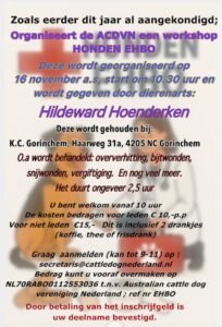 De Australian Cattle Dog Vereniging Nederland organiseert op 16 november a.s. een workshop EHBO voor Honden.