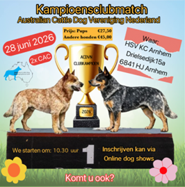 Sinds vandaag staat onze Kampioensclubmatch Op Online Dog Shows. U kunt zich dus nu al inschrijven voor deze fantastische Kampioensclubmatch op 28 juni 2026, waar u🍀2x een CAC kunt winnen!!🍀